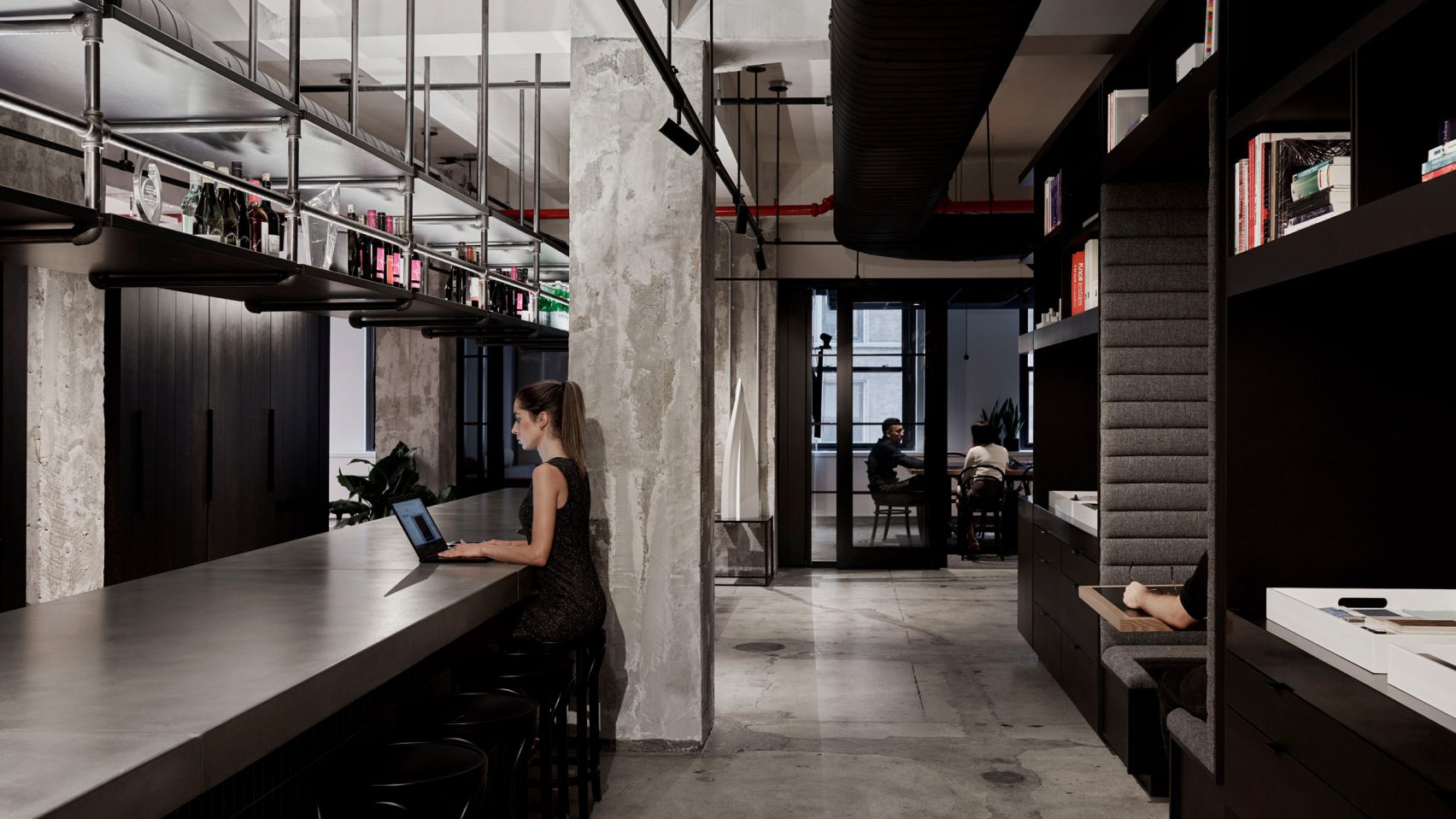 Architecture firm Woods Bagot has used “New York City grit” as an aesthetic reference for the interiors of its Downtown Manhattan offices.Plenty of exposed concrete can be across the workspace, located on the seventh floor of the Continental Bank Building at 30 Broad Street.