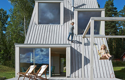 瑞典伟大作家奥古斯特•斯特林堡曾盛赞达拉纳的田园诗意是其它地方无法比拟的,因此这里成为最具瑞典特色的风景区。我们要说的这栋外形如三角的木头小屋就位于达拉纳的森林边缘。它出自Leo Qvarsebo之手。