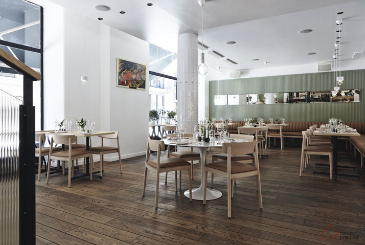 为了反映出店主眼中“城市的经典”视角,即用现代的方式重新诠释经典欧陆和新大陆美食。设计师打造出一个休闲舒适的内部空间,同时结合了新鲜的城市元素。在餐厅中心区,一个Statuario大理石和不锈钢打造的鸡尾酒吧脱颖而出,其雕塑形式具有强烈的几何感,同时用铜质配件做点缀。其余的空间被分成不同的用餐区和饮酒区,家具木材选用白蜡树和山毛榉搭配皮革。