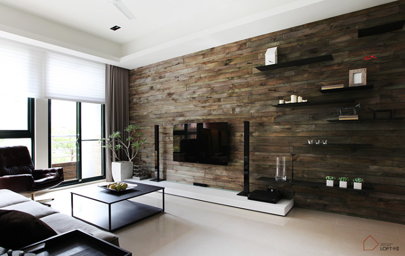 这是由台湾尚艺室内设计分享的位于台北大直90㎡五口之家的住宅案例,该住宅设计以自然洁净为基底,以天然建材搭配大面茶镜放大空间,没有隔间墙和大型收纳柜的视觉干扰,公共空间宽阔而明净。此外,因为家里养了两只狗、一只猫,维持空间宽敞好清理一方面也是为了它们,仔细一看,会发现还有给猫咪到天花板穿梭的升降梯,以及高高低低的开放层板可以随性跳跃,简直是小猫游乐园。特别值得一提的是,由三种尺寸杉木堆排起来的电视墙,还经由雷射切割雕镂出家人和小孩的名字,装上 LED 灯后,成为一家人进家门就会心一笑的温馨场域。