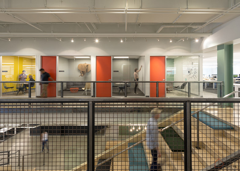 旧金山室内设计工作室O+A将90年代阴郁的办公楼变成了Evernote全新的Redwood City办公室。80000平方英尺的建筑包含各种不同的工作区,健身房及乒乓区等。打造双高接待区,加入宽阔的楼梯,内含座椅,以鼓励员工使用,并在楼梯上会面谈论等。设计师打造了许多不同类型的会议空间——正式的,非正式的,协同的,集中的等等,白板油漆墙无处不在,人们可以在任何地方记录下自己的想法。