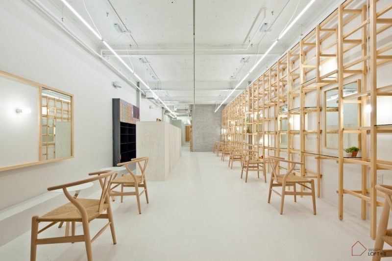 店主将这个出租单位作为他新的创业平台,这个细长的空间有28米深,正面为4.4米。设计师利用这一狭窄的临街优势,以现有的框架和空间的轮廓为线索直截了当的设定每一个空间。有效利用单位长度,在每个空间中保持一定的距离,同时又将它们无缝连接起来。保持分区的数量降到最低,并且将整个空间涂成白色,创造一种抽象的感觉,同时为新旧材料也赋予了这种感觉,包括墙壁,天花及地板等。从而为内部的人及对象营造了一种独特自信的感觉。