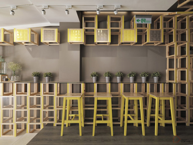 JC Architecture第一次成功打造了Les Bébés蛋糕店,使用简单的折叠形式打造店铺空间,十分有趣。这是他们的第二次合作。设计师重新审视包装盒,探索记录折叠的灵感。采用盒子概念,把它简化为其结构元素。用四个折叠步骤,0,30,47和90度角,将其从原始状态折叠为三维体块。设计师在这四个角度创建了一系列这样的木质箱体框架,使店铺从内到外的过渡创造出探索兴奋的体验。