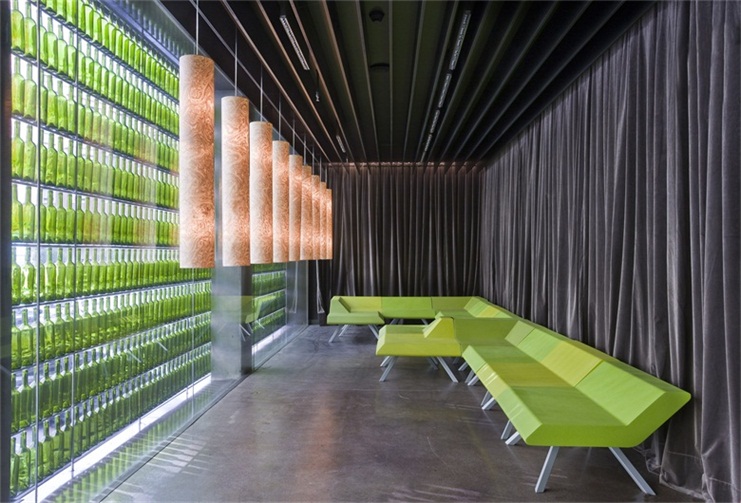 El Merca’o位于西班牙Navarre。出自Vaíllo & Irigaray + Galar。990平米的空间,设计师将元素与厨房食品市场灵感搭配,结合整个空间,呈现出彷如Warhol画作的空间景象。采用了绿色的空饮料瓶装饰、平底锅吊灯及天花、屠宰桌打造的桌子,长凳和地板等元素来架构整个空间,并非简单的置入,而是赋予它们独特的功能,形成了这个多变而令人惊艳的空间。