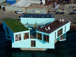 标准的集装箱系统作为很好的陆路、海陆运输系统,在庞大复杂的运行网络系统中节省了不少成本。这个住宅解决方案就是采用集装箱作为框架,极度灵活的建筑类型学。9个集装箱成圆形的堆叠,中间的花园就是学生的公共活动区,这个住宅就像一艘船一样漂浮在海面,这样的构造同样可以使用在其它的港湾城市,这样就能解决土地的限制和住宅需求的问题。