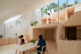 这座名为「元斜面の家」坐落在神户一处山坡上,因为当初土地开发而造成斜面内凹,畑友洋将原位于此地的建筑拆解后,以其轮廓作为基础,重新建起如今的「元斜面の家」。其中最别具特色的设计,便是将屋顶打造成顺应斜坡地的角度——不再是突起形成风阻的建筑,让风势能顺应斜坡而下;不仅让建筑外观大胆而充满趣味,更因内部如阶梯式的分层,将阳光导入室内。
