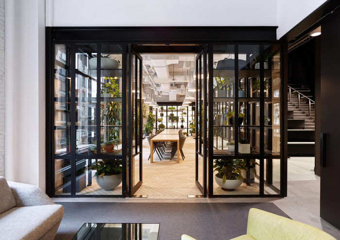 Olson Kundig设计了一家数字媒体公司的总部,这家公司的总部位于纽约一个具有历史意义的120年建筑里,它为员工提供了一种沙龙式空间,也为他们在之前的办公室里无法实现的互动和隐私提供了机会。建筑的原始结构不变,头顶的管道被暴露在外,原有的钢柱从新墙伸出来,原有的砖墙依然清晰可见,展示了这座建筑的历史。