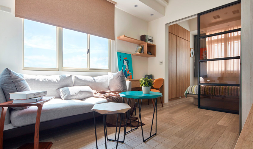 这栋30年小公寓是一对新婚夫妻的第一间房,层高三米六。旧格局原本为夹层设计,但楼梯占据客厅大部分空间,遮蔽采光,且夹层上高的人很难站直,考虑两人需求空间不必靠夹层补完,负责改造的优尼客空间设计大胆提出拆除夹层的想法,室内风格选定为屋主偏好的北欧风,在简洁线条中添加淡彩装饰,并用明亮的茶几、单椅、无框画等彩色配件增加活泼气氛,最终完成了坐享两面通透采光、机能完整的小巧新婚公寓。
