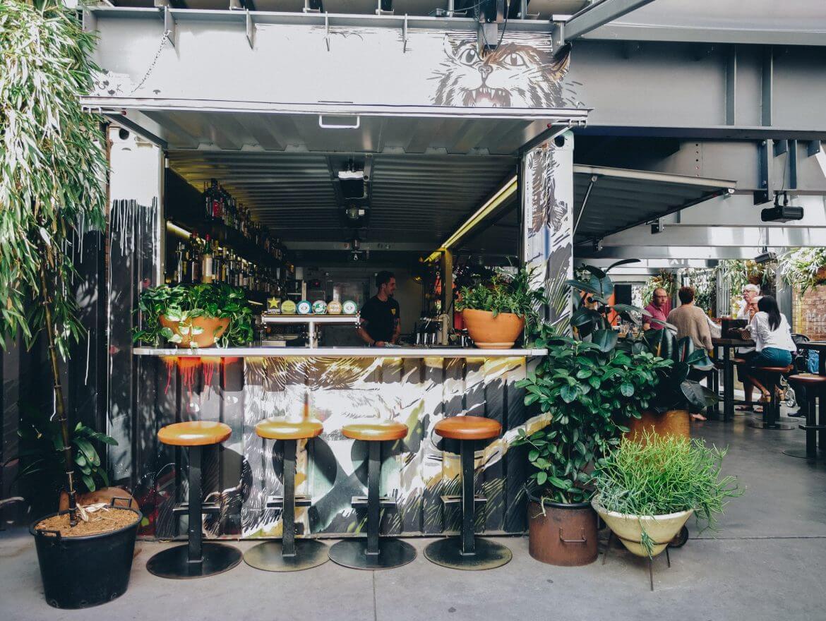 集装箱酒吧(Container bar)是近几年相当流行的创意概念,经常被运用在快闪店的活动中;这些航运集装箱箱有其固有的强度、广泛的可用性,比传统建筑材料(例如:砖或水泥)都来得更加环保。而位在墨尔本市中心一处改建的停车场上,名为Whitehart的复合式空间成为当地人的热门新据点;大型钢条与蕨类植物不相干扰的箝制一起,Whitehart不只将停车场的工业空间重新再利用,也成功搭上这一波集装箱酒吧的风潮。在停车场与集装箱这两种容纳空间里,创造出一个既遮蔽又开放的格局,供来访者在此一览极具墨尔本特色的城市涂鸦艺术创作。