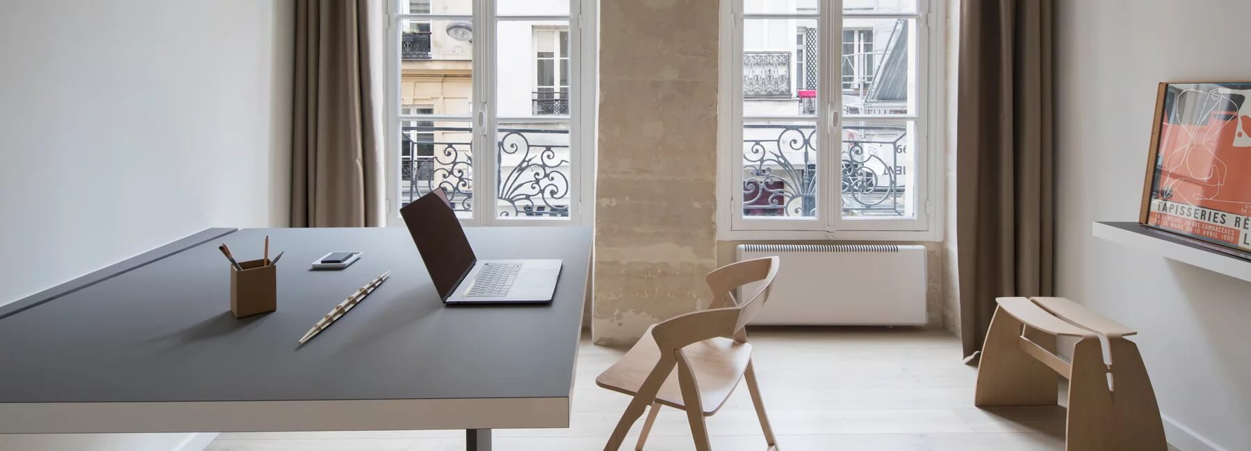 challenged to create a multifunctional space in 16 square meters, enrico bona and elisa nobile of italian EDB STUDIO have designed an apartment in the heart of le marais, paris, which easily turns into an architectural studio. the limited space features all the mod cons — even two beds and a large working table.