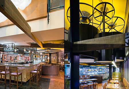 Farmers休闲主题餐厅的建筑形式和元素被设计并成功地采用到新的设计中,如将筒仓转换成一系列餐饮摊位。收集各种废旧材料和家具,这些重复利用大大减少餐厅的碳排放量。装水果和蔬菜的罐子也是来自西维吉尼亚州的一个农场。