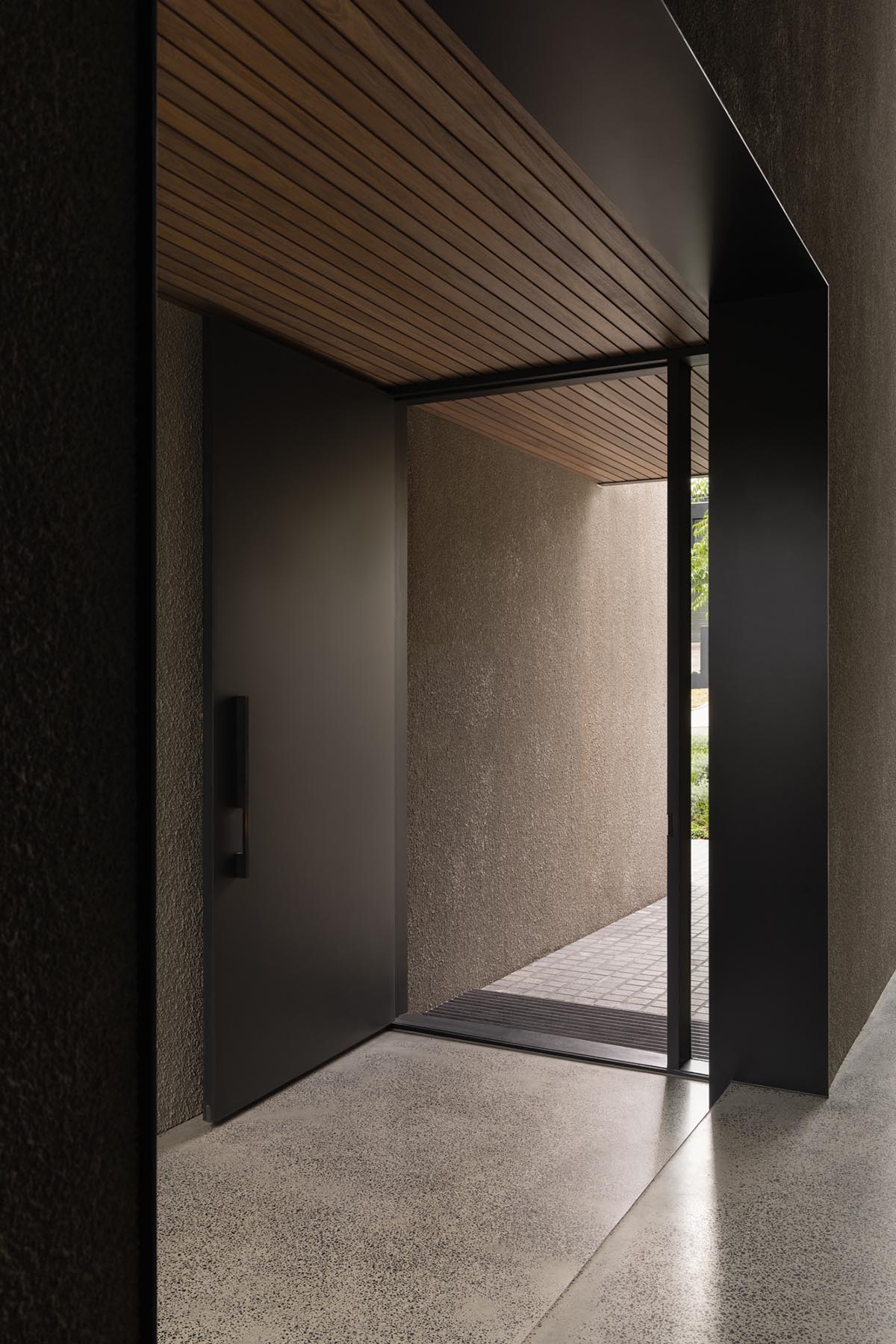 InForm 的 Stucco House 体现了形式简约、精致材料和深思熟虑的细节的设计理念。这座住宅位于墨尔本Beaumaris 海湾郊区一条缓坡、绿树成荫的街道上,给人一种安静的感觉。其简单、谨慎的灰泥立面掩盖了丰富的材料调色板和内部戏剧性的空间体验,在外部克制和内部活力之间形成了鲜明的对比。