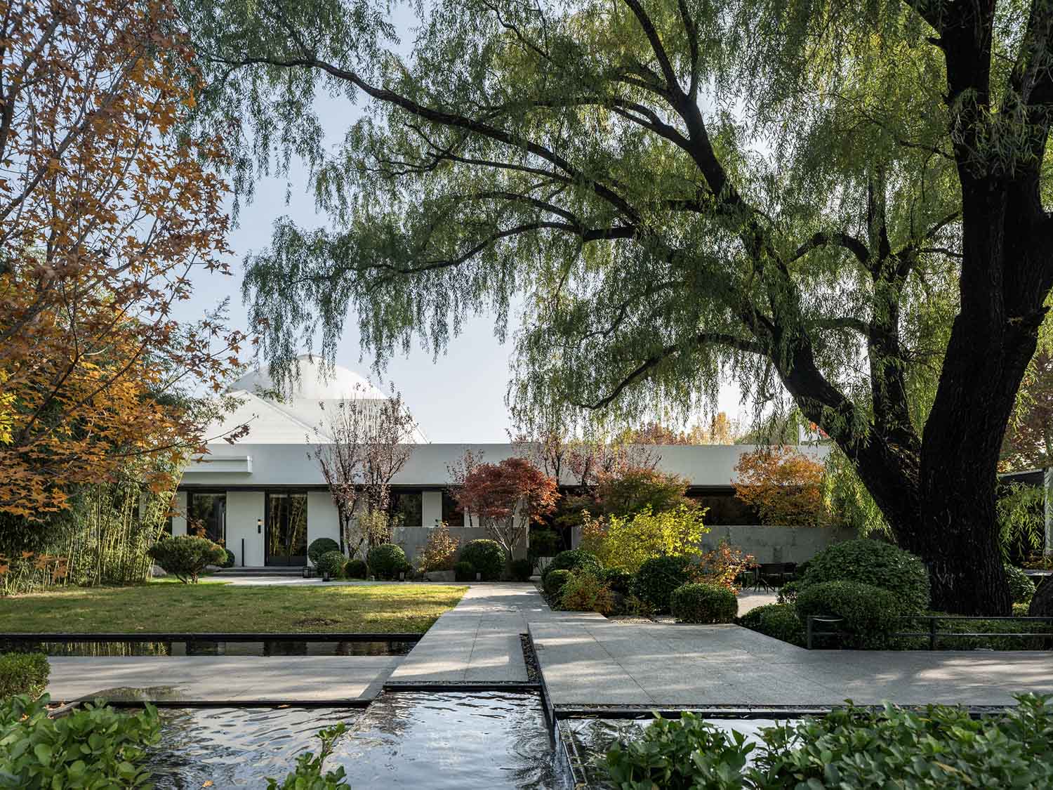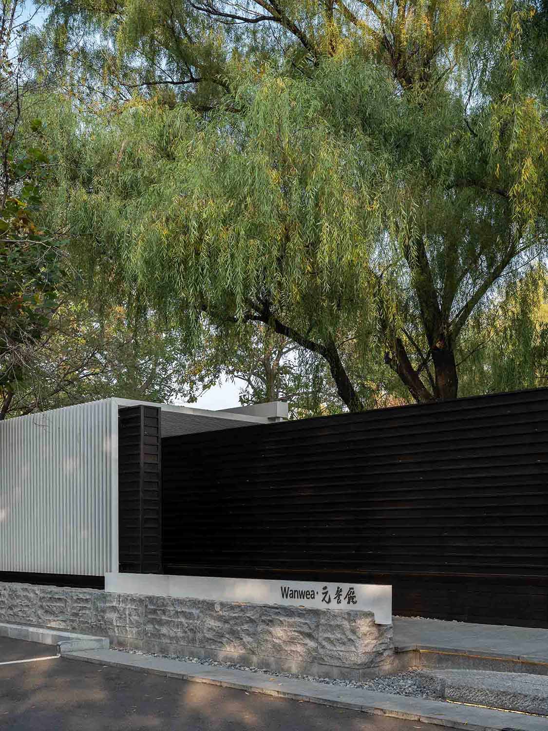 但空无不意味着荒芜,绝佳的地理位置和环境条件使建筑的可能性变得宽广,也有了建成后不同的到访者对Wanwea·元的多向解读。在老朋友荒野植物园的协作下,穿插互构的内外庭院与建筑主体重新凝聚了这一地块,围绕如母亲般的河柳创造整个园子的生命状态。草坪、踏步、水面切割出庭院自近而远、自下而上的景致,明晦冲融、重叠缥缈。