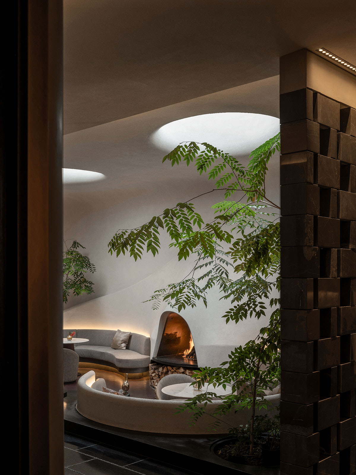 In November 2023, the upscale restaurant brand Wanwea·Yuan under the Da Ya Li Restaurant Group quietly launched. DaQuan Wang from TANZO Space Design described the design process as somewhat painful like tough grass breaking through cracks. Still, the final result also reflects the name of the restaurant: Sketching an abstract, holistic beginning in a chaotic space, which becomes vivid and concrete as people enter.