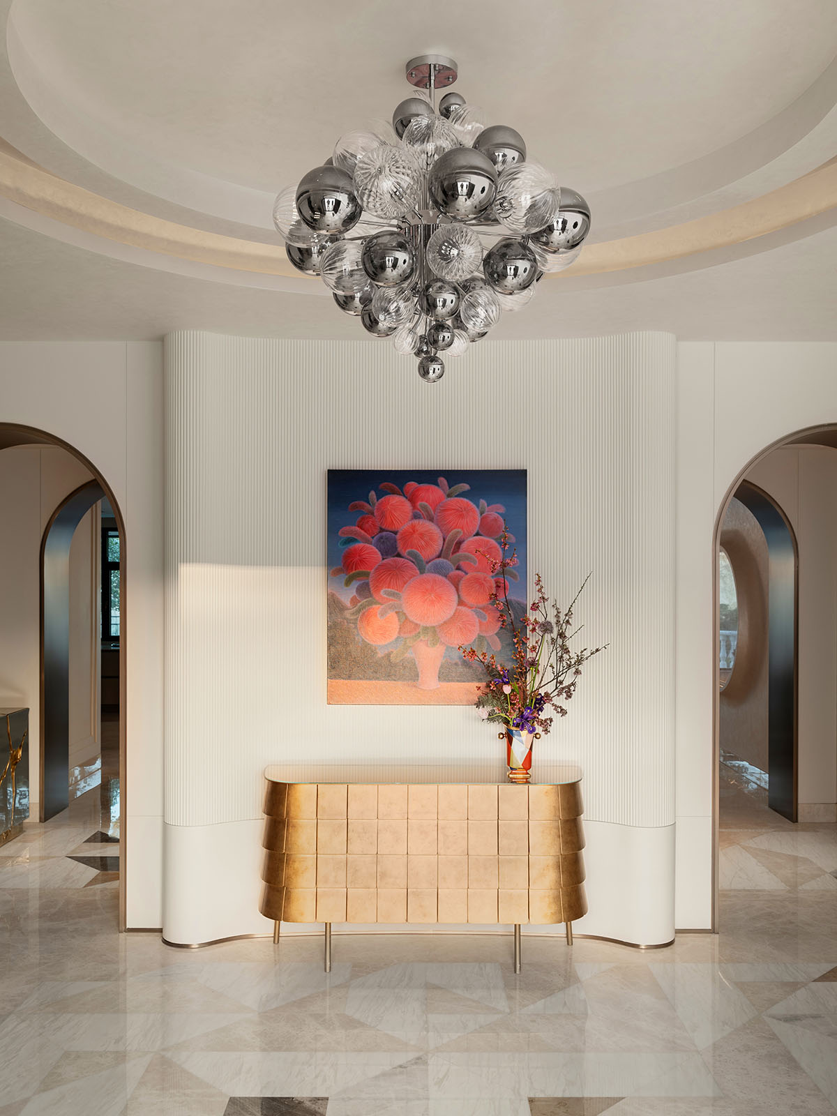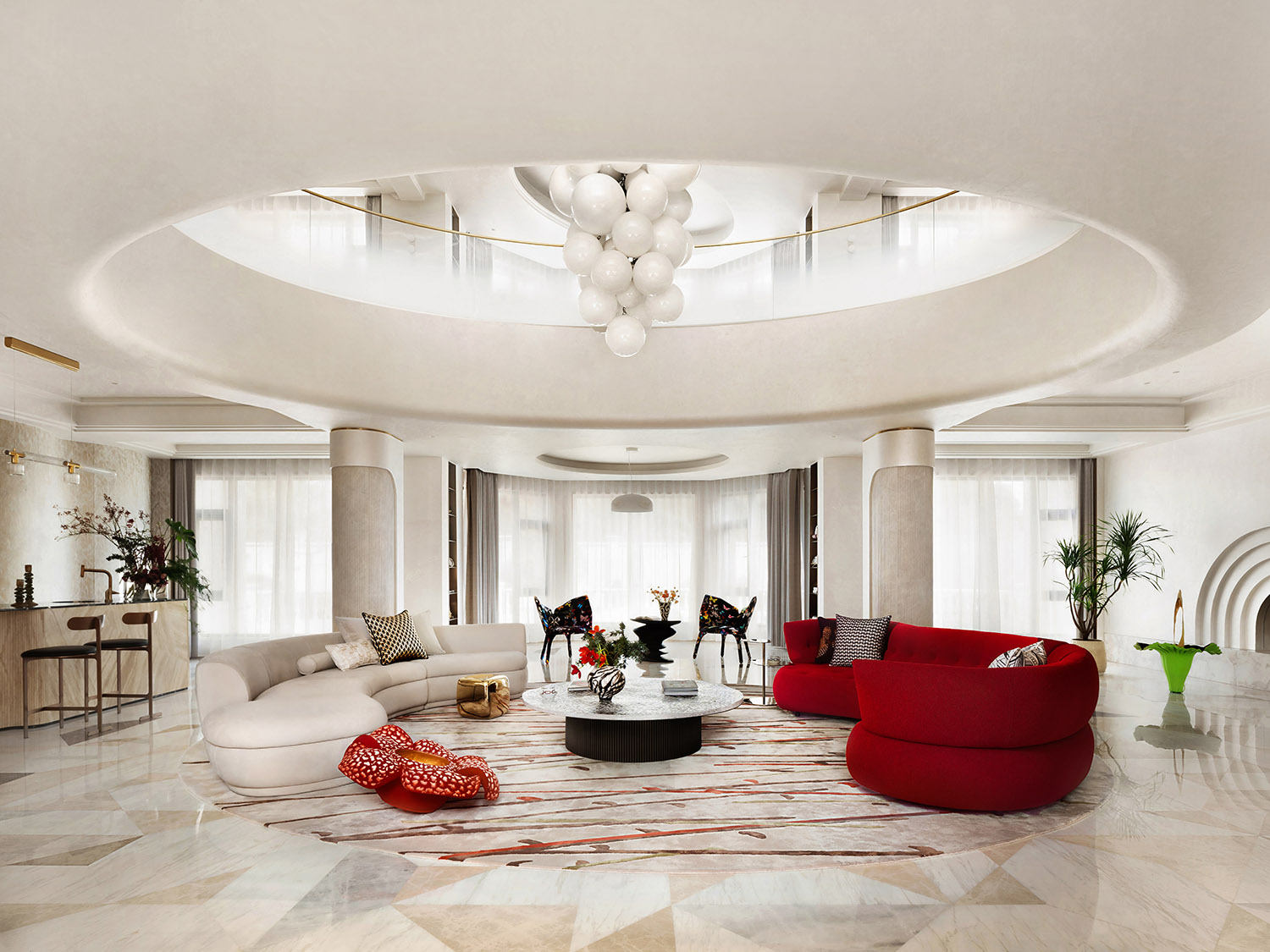 2000m²宅邸融合未来主义、几何主义与实用主义,以大开大合的形式,串联起代际之间的情感与艺术传承。纯净的空间状态,允许⼀切个体兴趣、⽣活仪式,亲情互动进⼊到家的叙事中,让每个人都能在其中找到属于自己的位置与归属感。