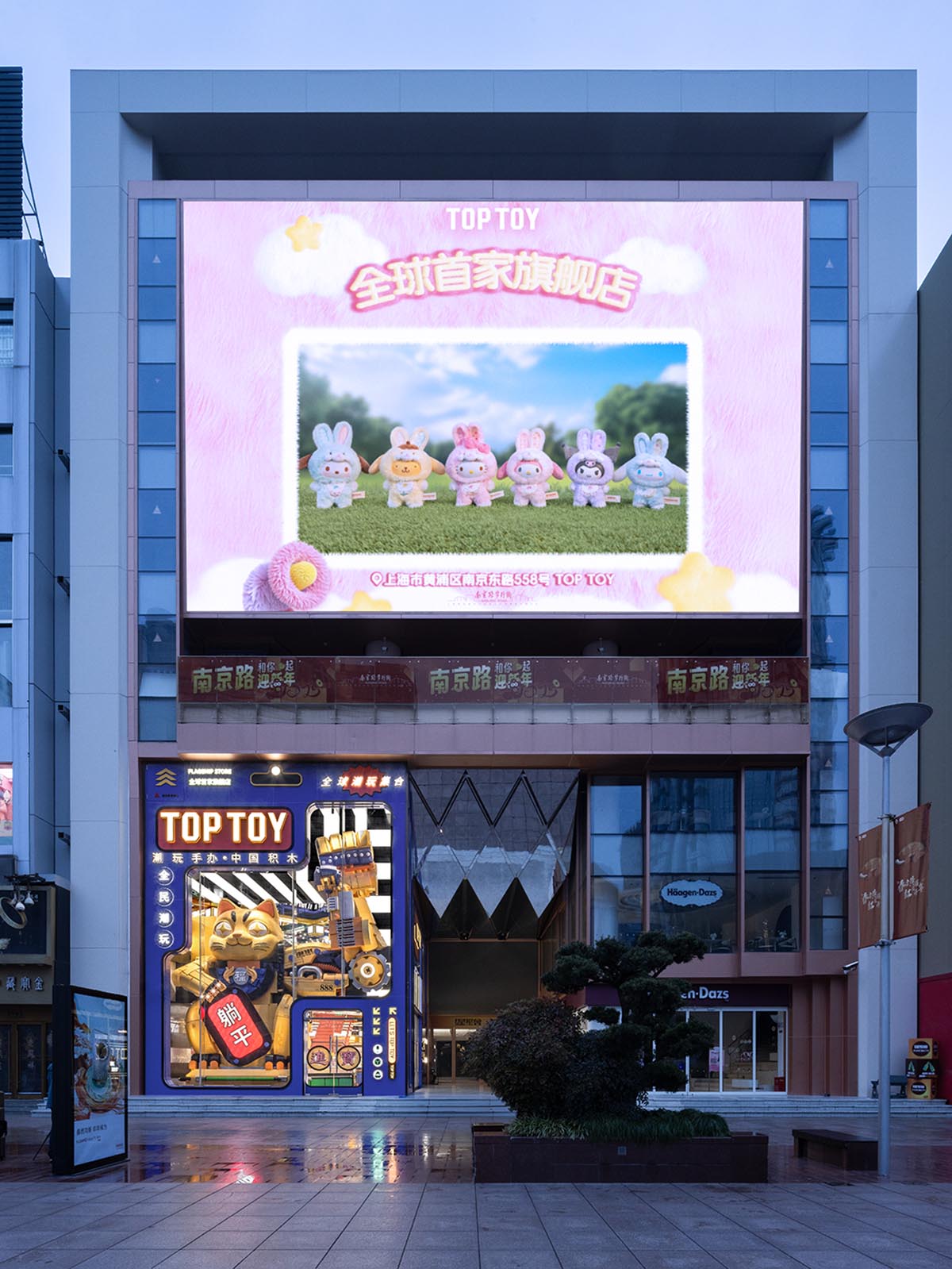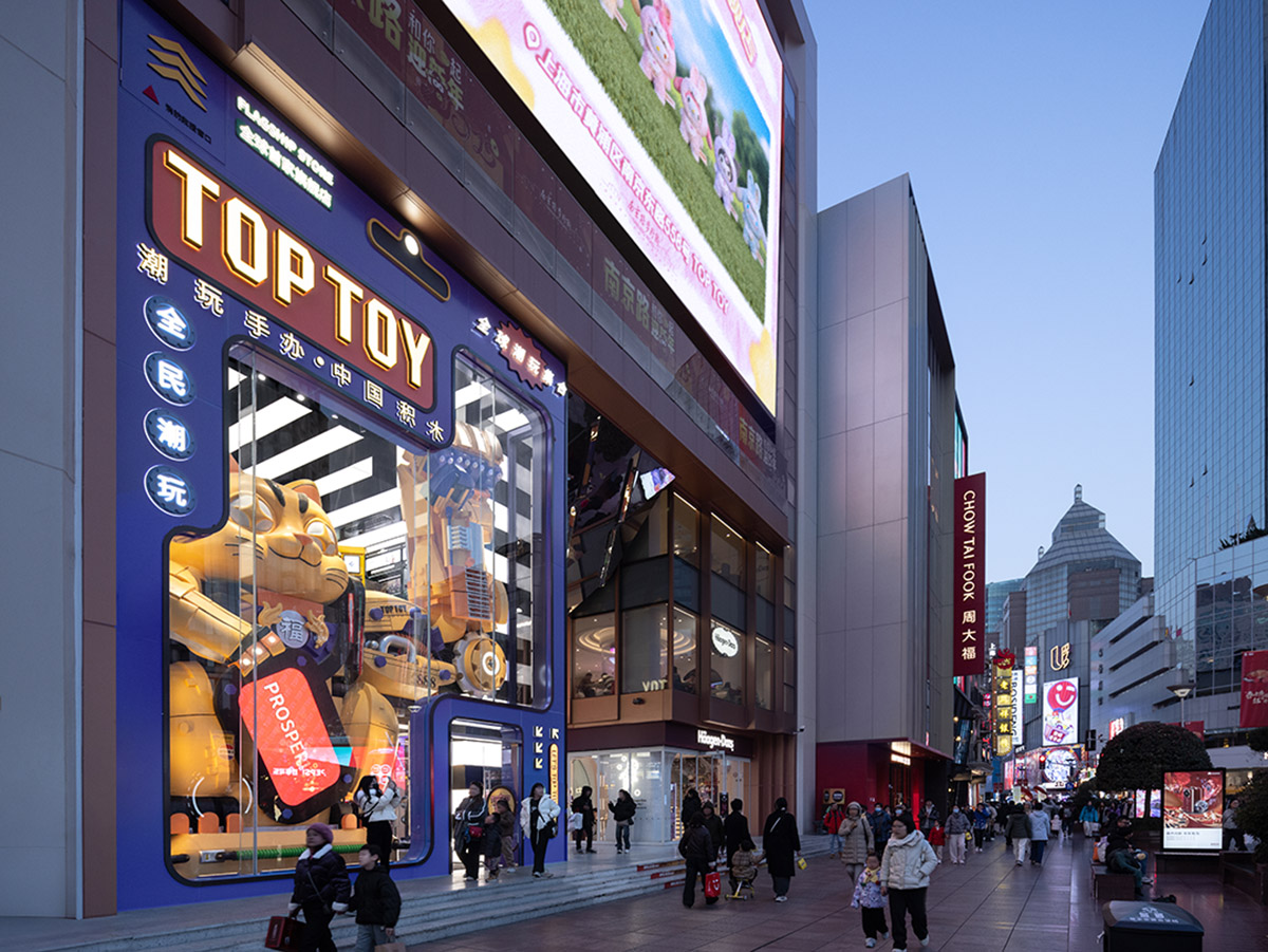 在代表典型城市街区的南京东路,TOP TOY上海首家全球旗舰店以游戏的自在给商业氛围注入松弛与幽默,打破传统商业建筑的严肃刻板,以游戏化的空间语言为消费者营造轻松愉悦的互动场域。