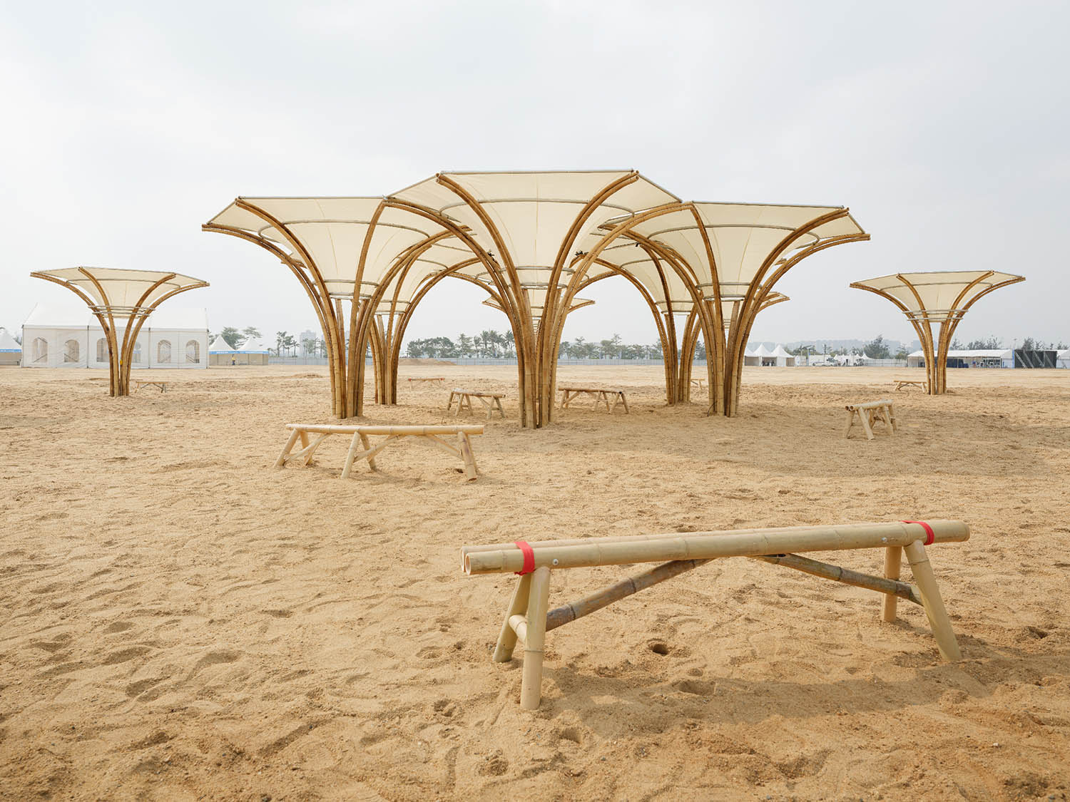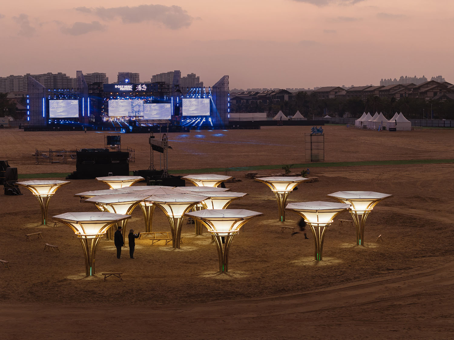 本项目是漓岛音乐节的一部分,由Also Architects创作的一组模块化艺术装置,在海南澄迈海滨为城市游牧美术馆构建了一个限时开放的艺术文化交流场域。