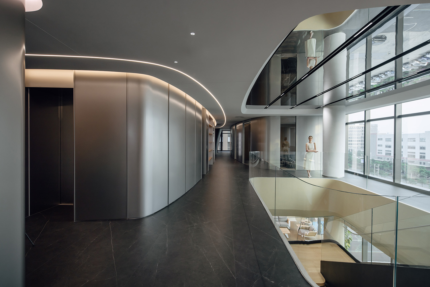 流动交错的空间布局,有效削弱传统办公空间的封闭性,又能避免过于密集和盲目追求紧凑的布局方式,展示未来办公空间更为灵活与开放的潜力。