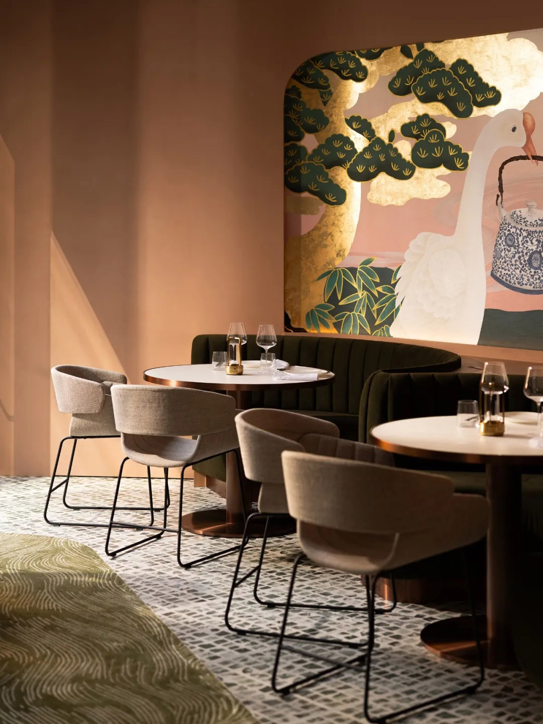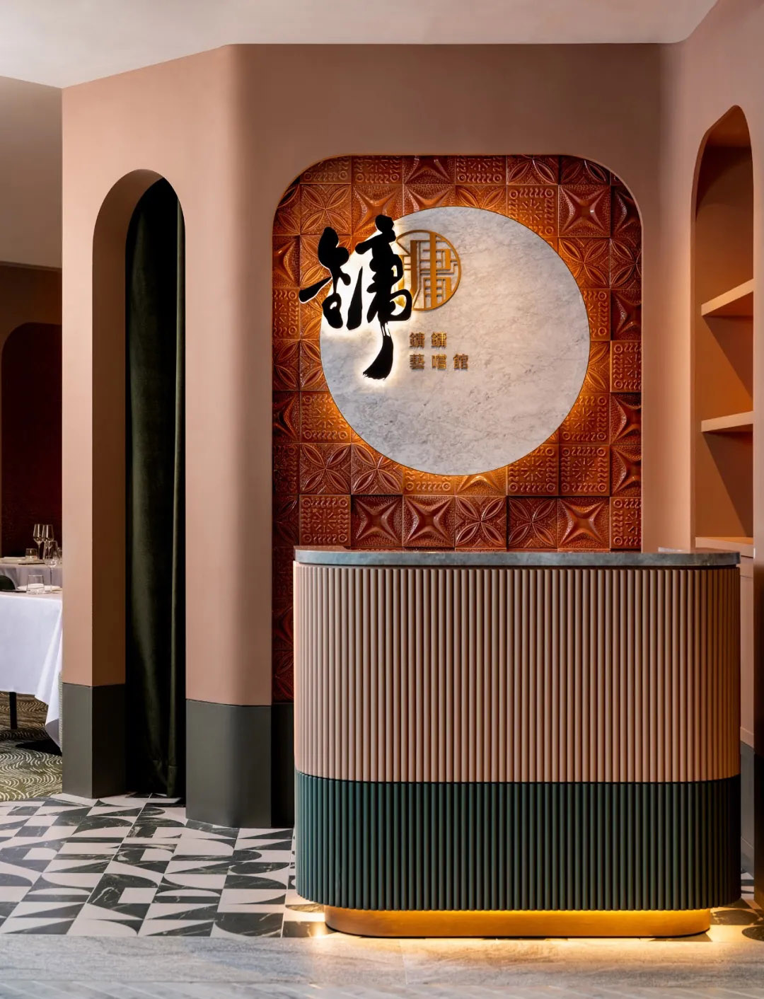 在迷人的粉玫瑰色调中,室内设计讲述着一个重新诠释传统的故事。墙面装饰采用了 1978 年原版的镛记瓷砖,通过优雅的粉玫瑰色处理,向餐厅悠久的历史致敬,同时焕发出全新的美学风采。