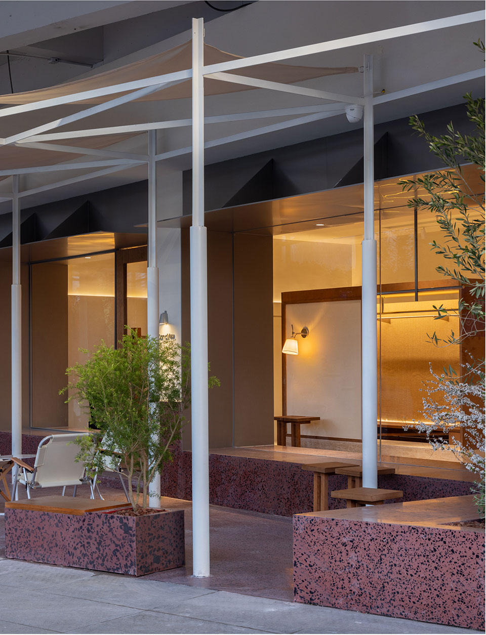 由场地出发,采用隐退的方式,柔化建筑界面,通过一个花园廊道连接,最终指向一种日常的诗意。