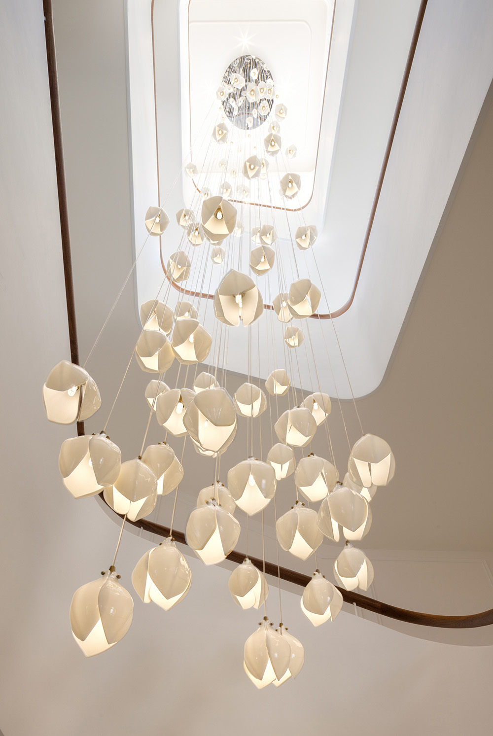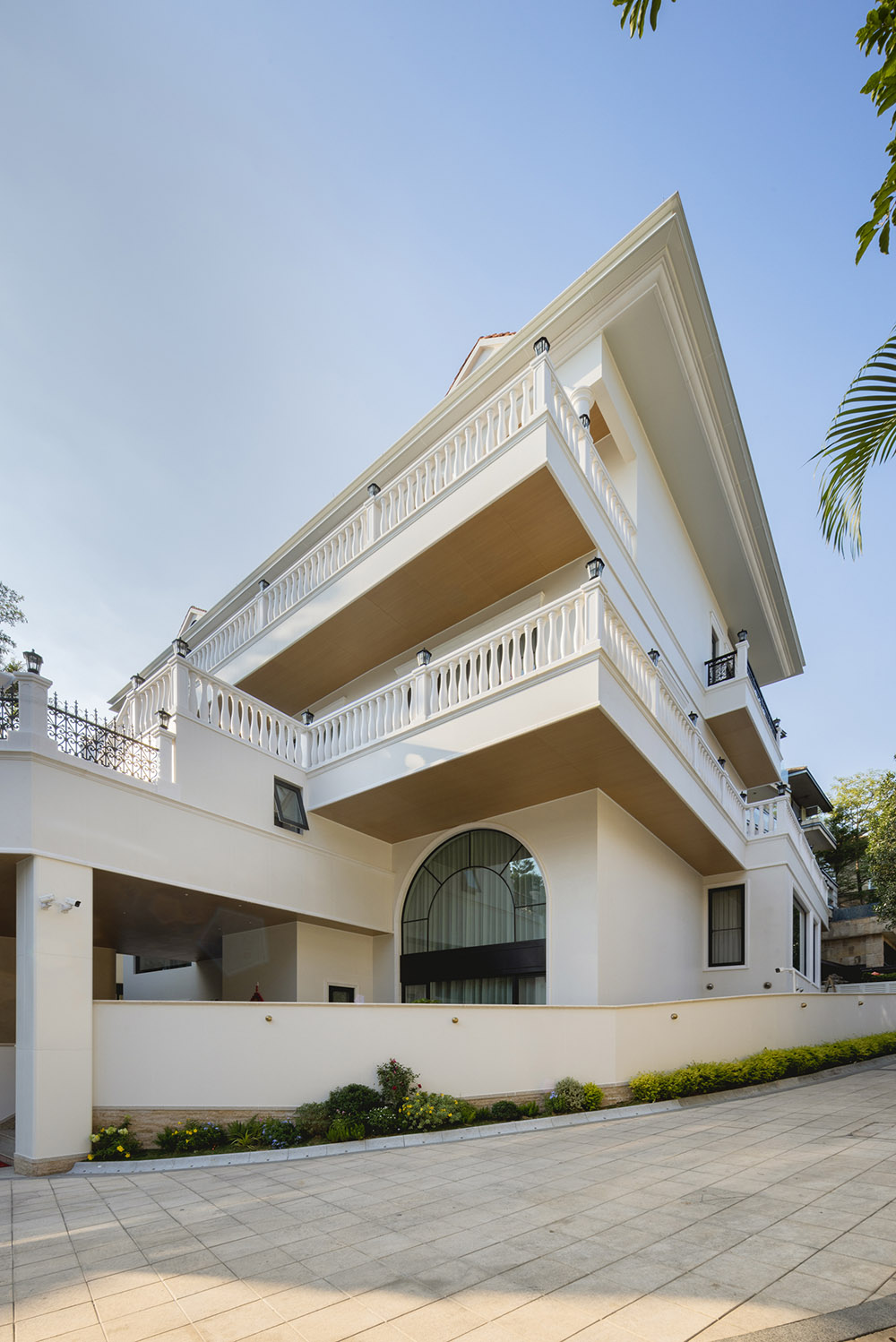 项目择址广州白云区生态腹地,踞守都市繁华与自然静谧的黄金交汇点。建筑群以纯白几何体块错落矗立于碧波湖畔,如一方悬浮于绿意之上的乌托邦结界,将喧嚣车马隔绝于外。