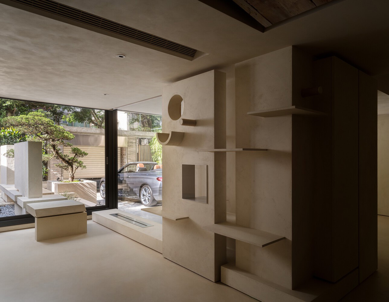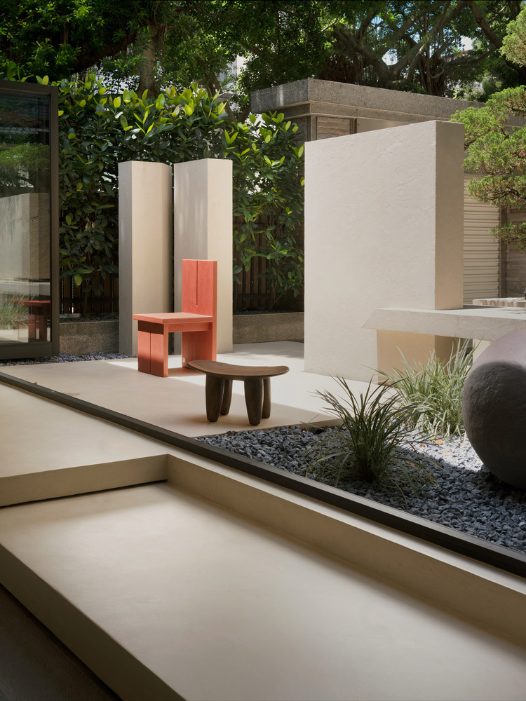 在改造的循环计划中,引入了两个独立的入口。一个保留了老人熟悉的路线,另一个则作为专用的访客入口。一座中等规模的结构墙横穿原来的花园,微妙地划分了景观,并为室内创造了更私密的花园视野。通往新访客入口的浮动步道战略性地放置在以前阳光不足的区域,解决了植被问题,并重新激活了未充分利用的花园区域。这种重新配置还确保访客的进入不再侵犯老人的居住空间。