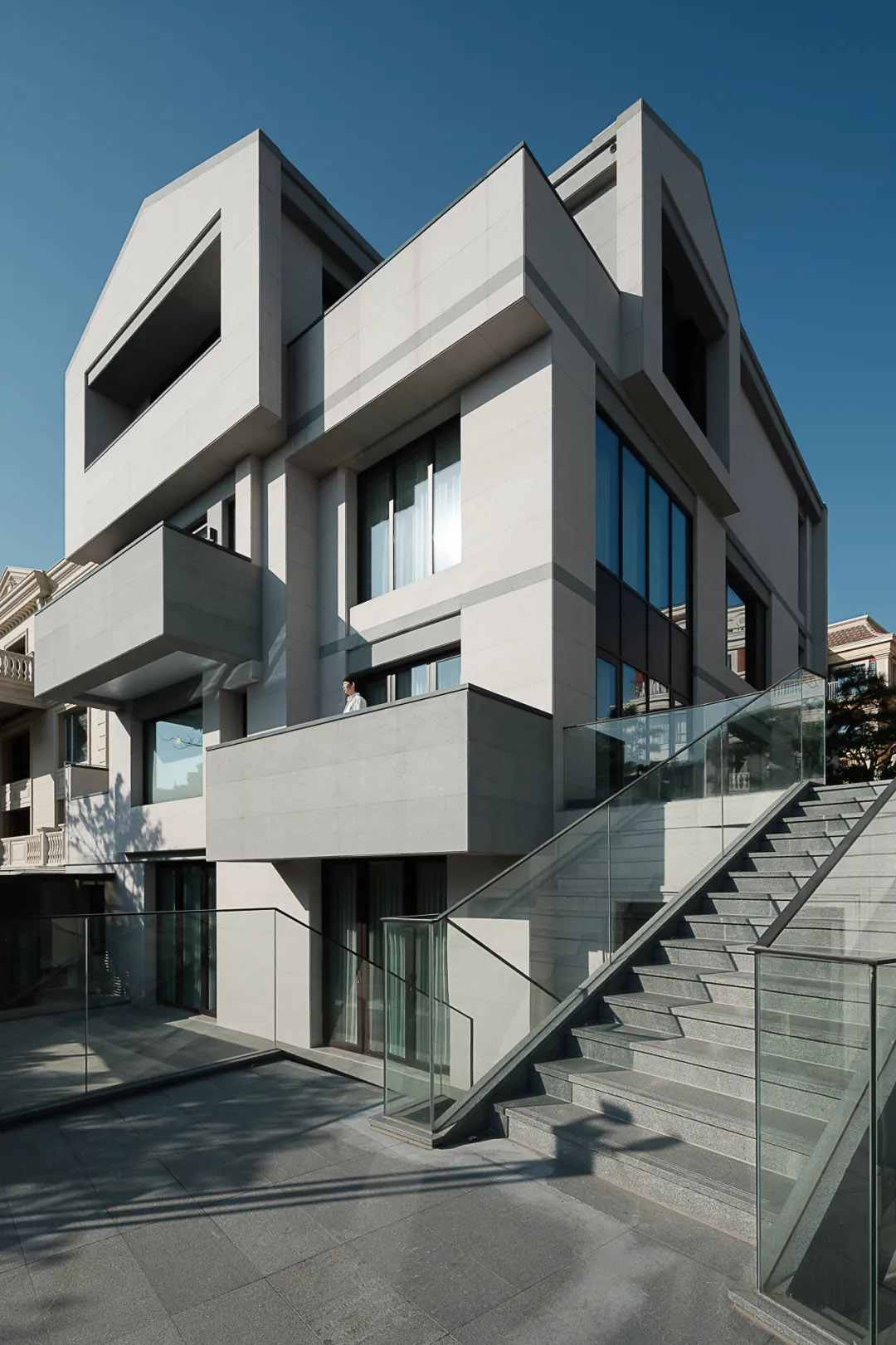 整个外立面的设计不仅体现了造型与审美,更展示了对材料的强度和结构力学的深入理解。锋利如刀的线条,剔除冗余装饰,通过精确的体块切割展现材料本质美感。在保持功能性的同时体现了未来主义的外观,并强调了光与影的雕塑感。