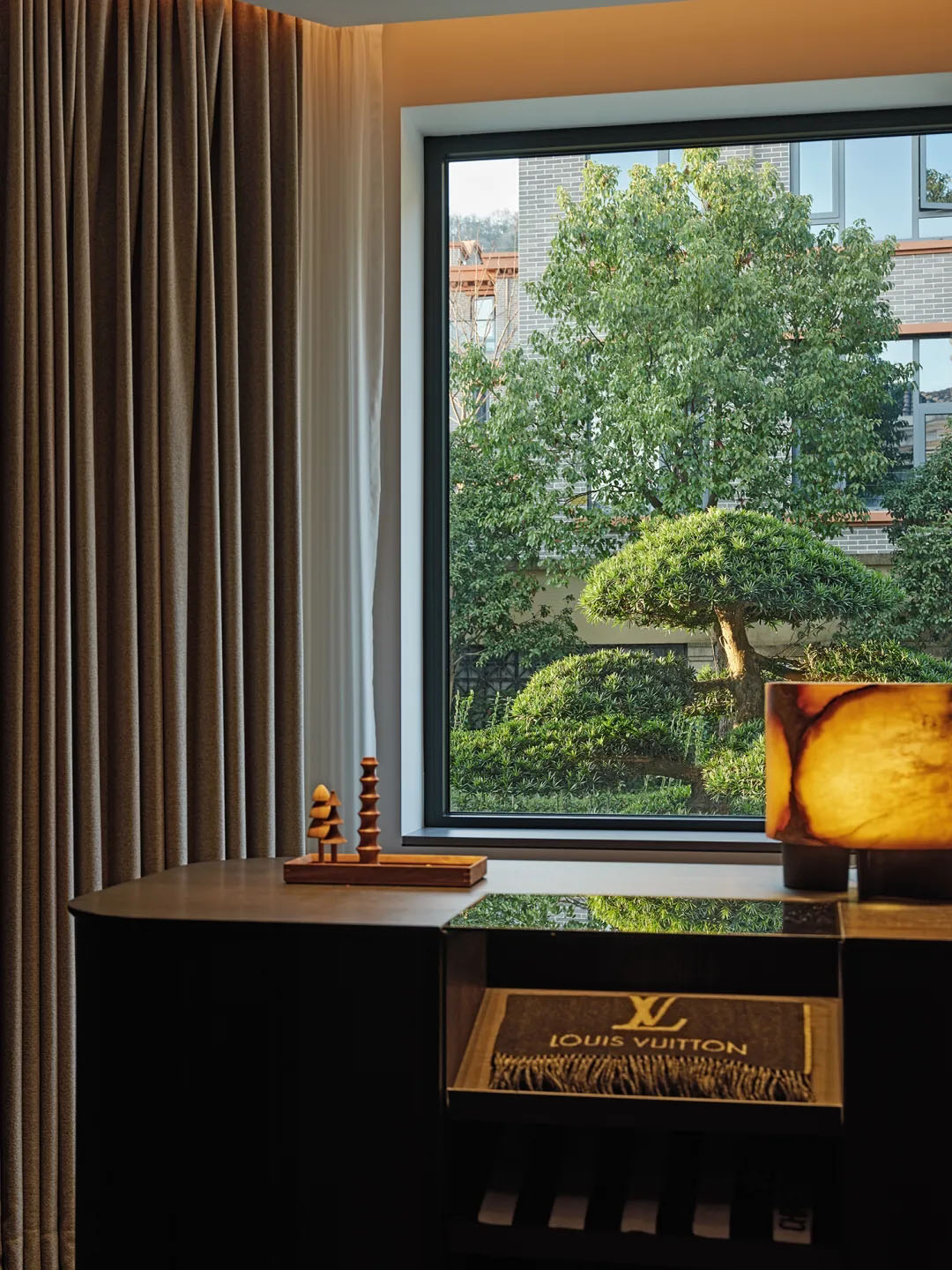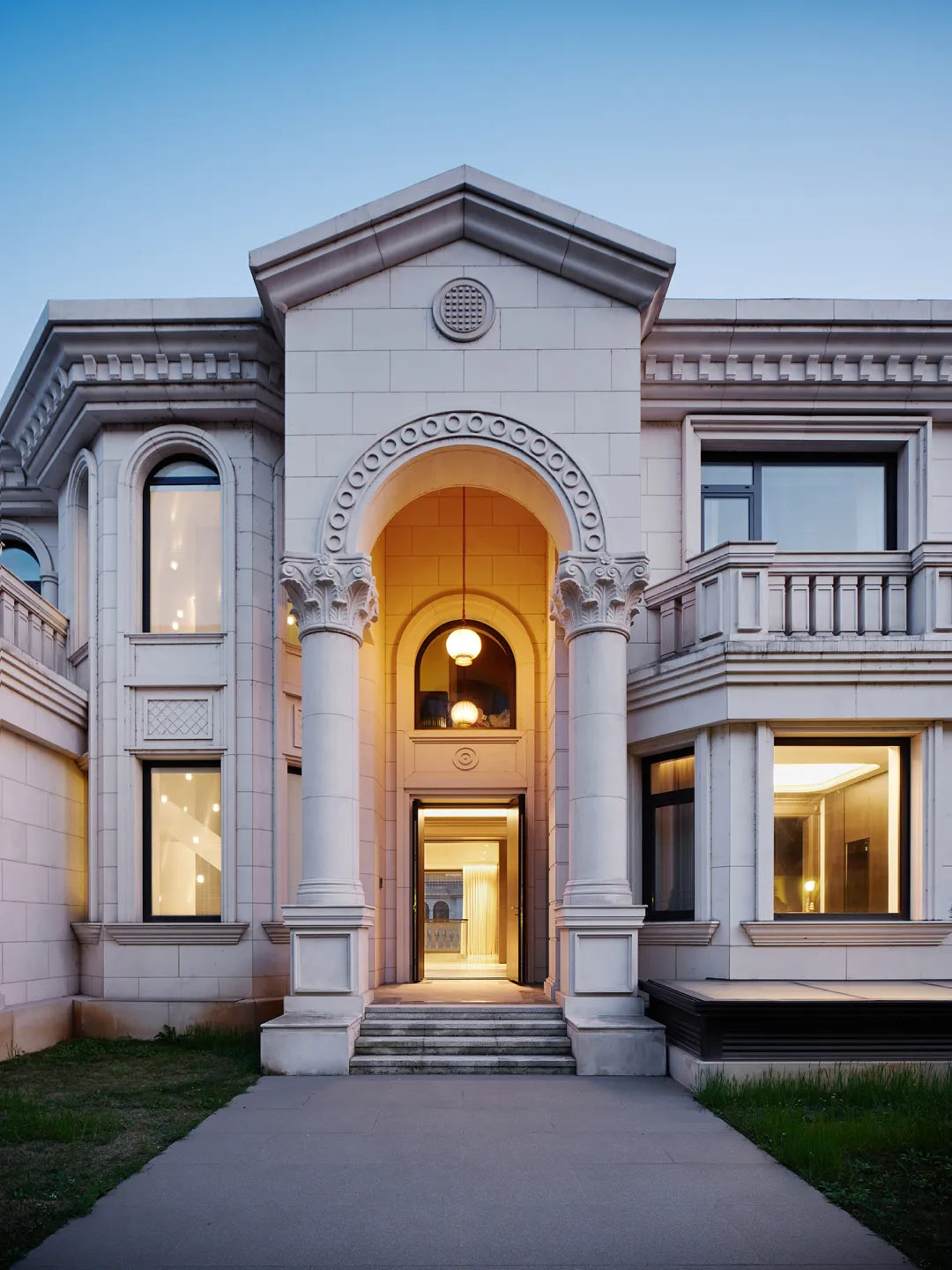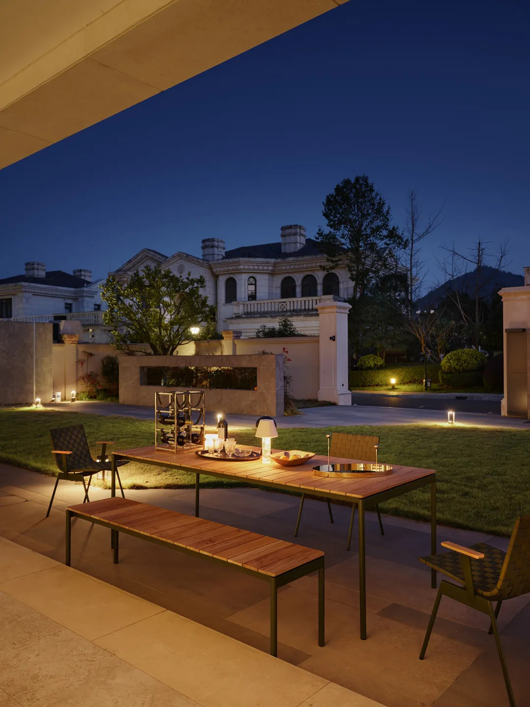 宁波东钱湖的烟波浩渺中,一栋三层法式庄园依坡地而建。建筑北侧借地势高差形成车行入户系统,南向600㎡花园如绿毯铺展,与湖山相映成趣。设计师保留并梳理了原建筑的大理石立面,仅对窗体比例微调,让法式建筑的古典线条与江南山水达成微妙平衡。坡顶阁楼的观景露台、层层退台的挑空设计,将湖岸四季晨昏化作空间的动态背景,实现“建筑从自然生长,生活向自然延伸”的栖居理想。