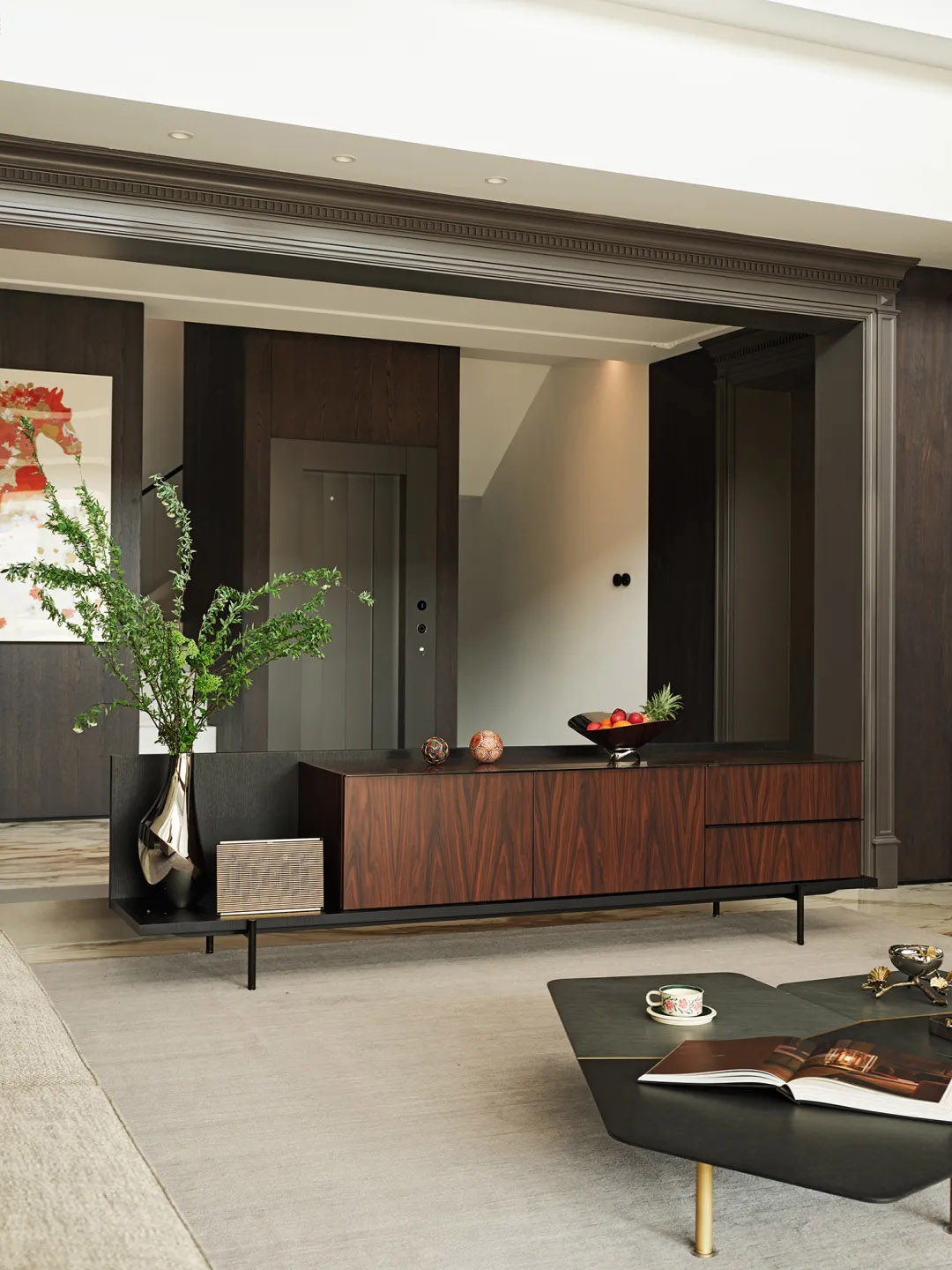 这套别墅是父母赠予海归女儿的成家之礼,亦是家族情感的实体寄托。设计周期跨越业主从单身到妻子、母亲的身份蜕变,空间被赋予“归途”的双重寓意:既是对游子归巢的温暖承接,亦是对新家庭启程的浪漫期许。